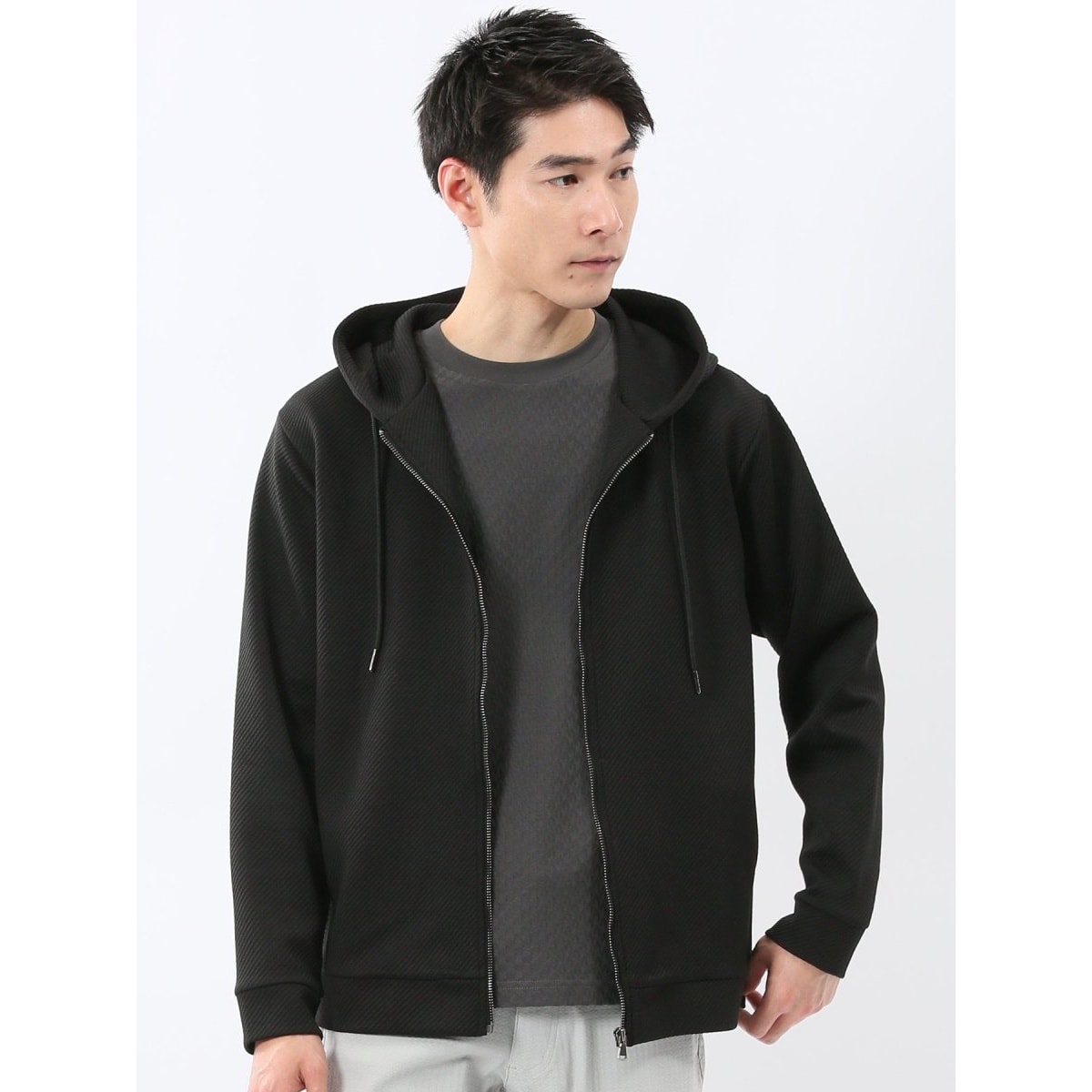 [タカキュー] ラクチンパーカー ストレッチ 吸水速乾 軽量 長袖 ニット