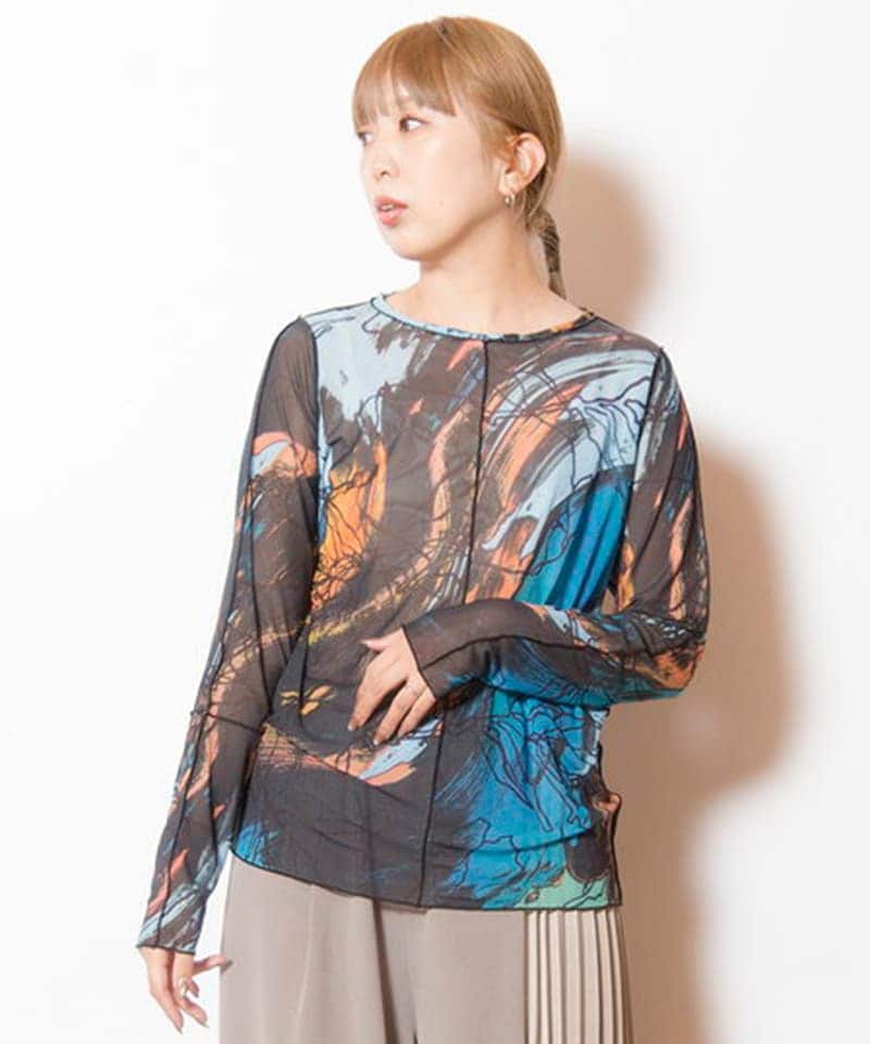 フロッキーチュールメロー切替長袖Tシャツ