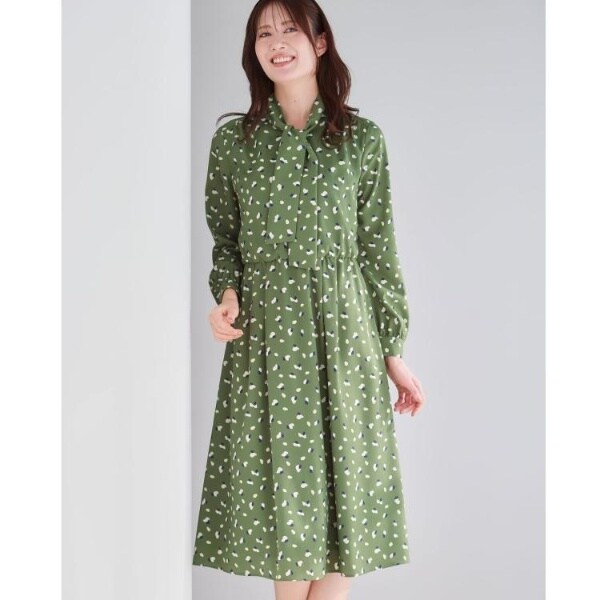 上品な雰囲気の花びらをインスピレーションしたプリントが目を惹くフェミニンなボウタイワンピース。