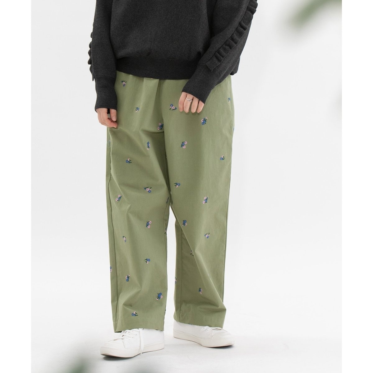 MONO-MARTフラワーロゴ刺繍スーパーワイド2タックバルーンスノーチノパンツ