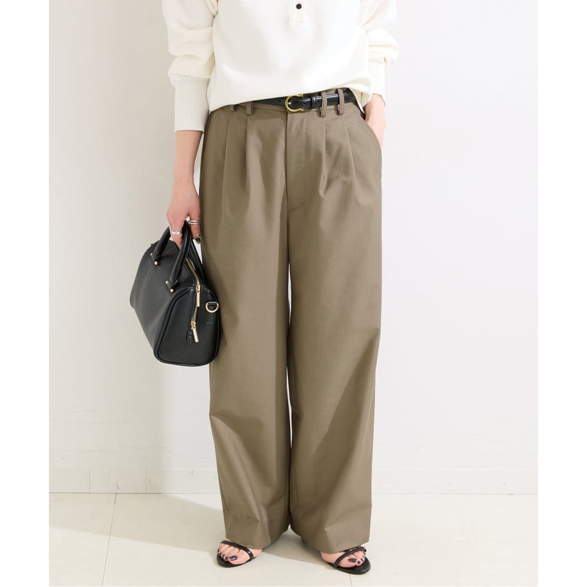後ろウエストはゴム仕様で穿き心地は快適、前から見るとすっきりとしたシルエットをキープ。ほどよいゆとりと美しいラインで幅広く活躍する万能パンツです。シンプルながらも上質感のあるデザインで大人のデイリースタイルに取り入れやすい一枚になっています。