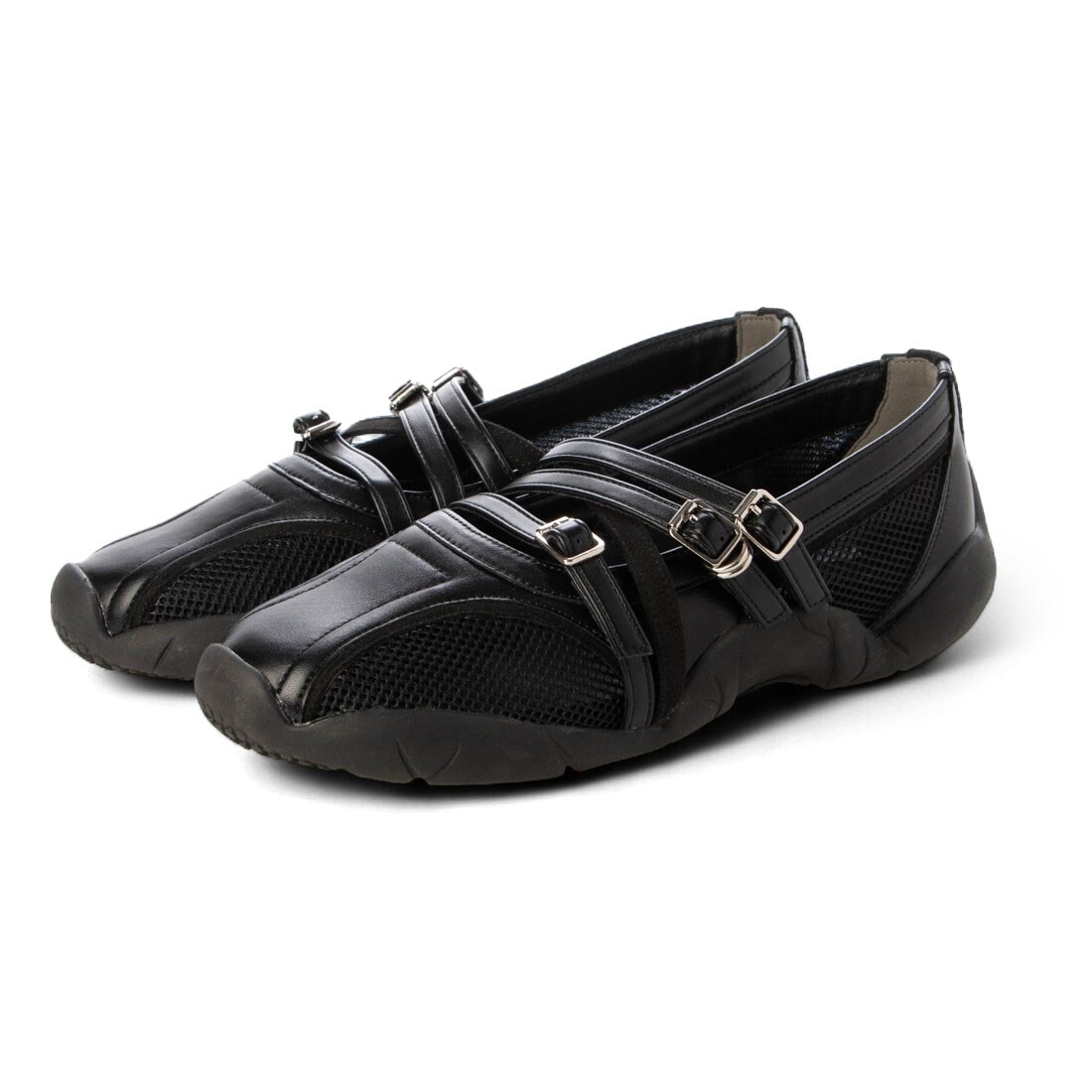 華奢なクロスベルトが春夏のコーディネートに抜け感を出してくれるメリージェーンスニーカー!サイド部分にメッシュ素材を使用し、夏でも通気性良く快適に履けるよう仕上げました。ベルトは3段階お好みのサイズ感に調節可能で、根本部分に伸縮性のあるゴム素材を施しベルトを外さなくてもスッと着脱出来て手間要らず◎約2cmの程よい厚みのソールは普段使いしやすく、つま先から踵までふわふわの中敷き入りでどこまでも歩いて行けそうな履き心地です。
