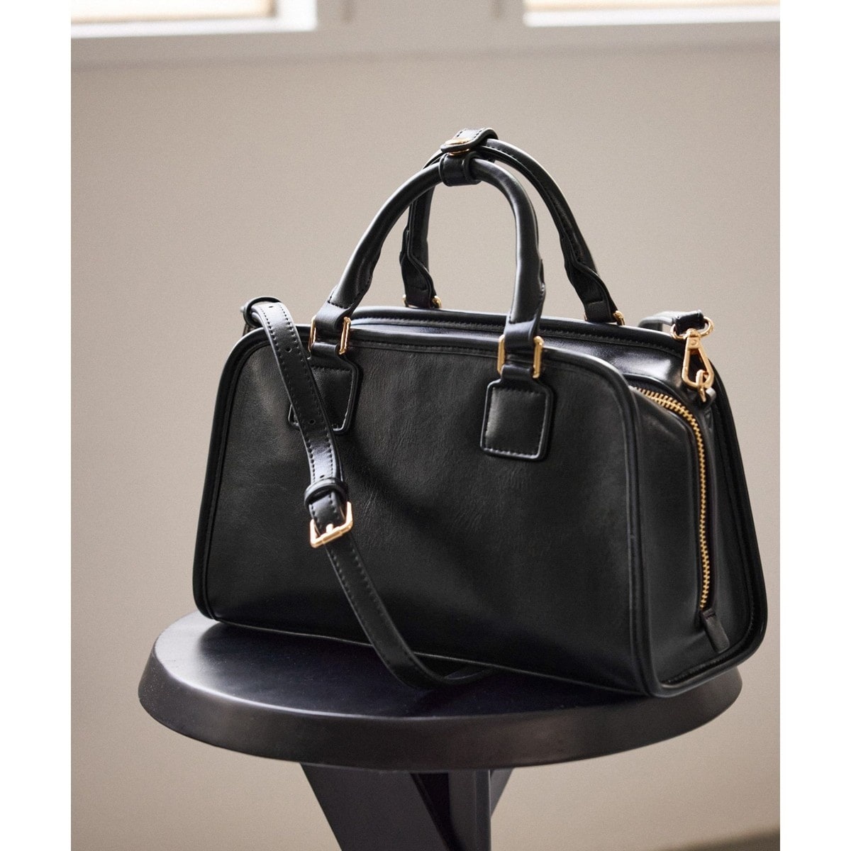 forksy. フォルクシー 合成皮革 2wayスクエアワイドボストンバック ショルダー バッグ sizeS/黒 ■■ レディース