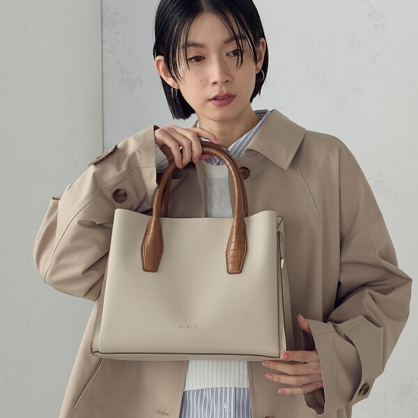 持ち手はクロコ調の型押し合皮を使用してアクセントにし、