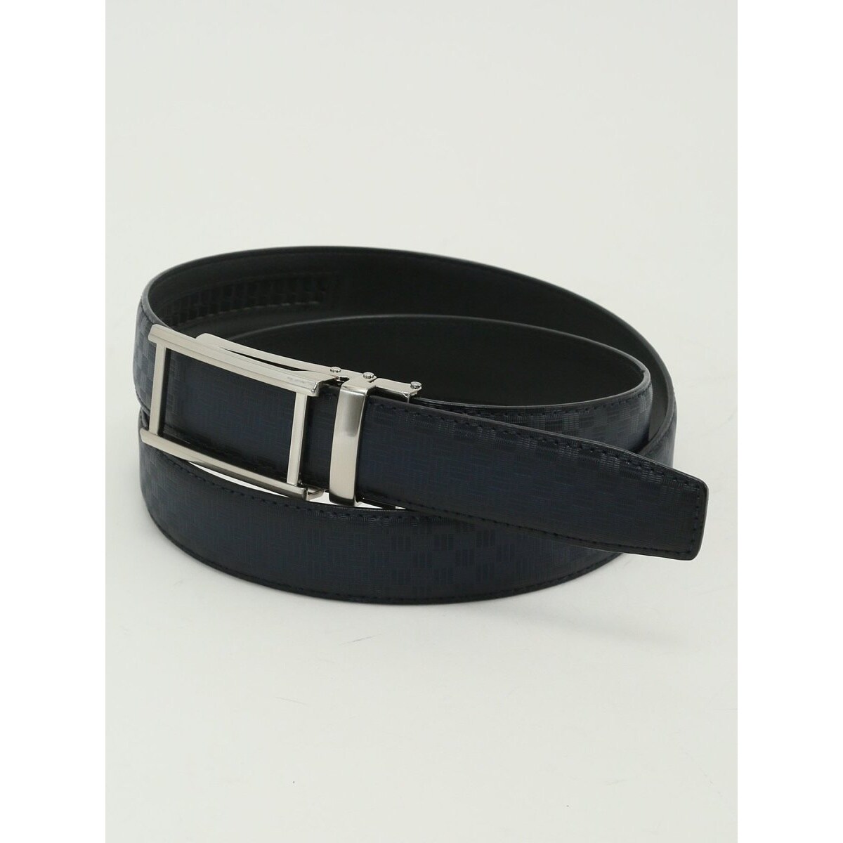 表側は市松模様の型押しをほどこした牛革レザー、裏側は合成皮革です。H型のスクエアバックルでスタイリッシュに仕上げています。シックな大人の男の装いを引き立ててくれる上質感が魅力です。