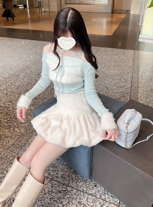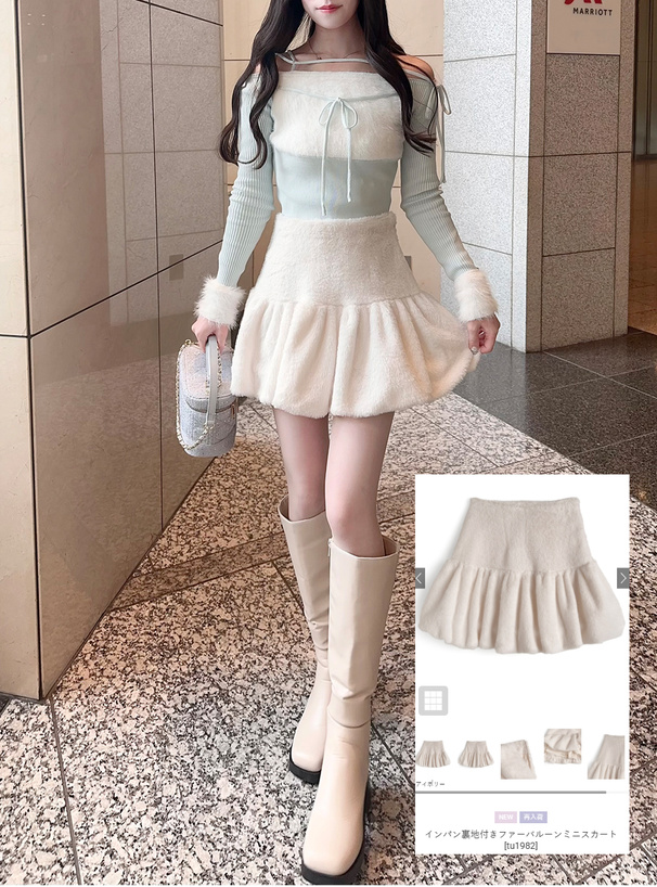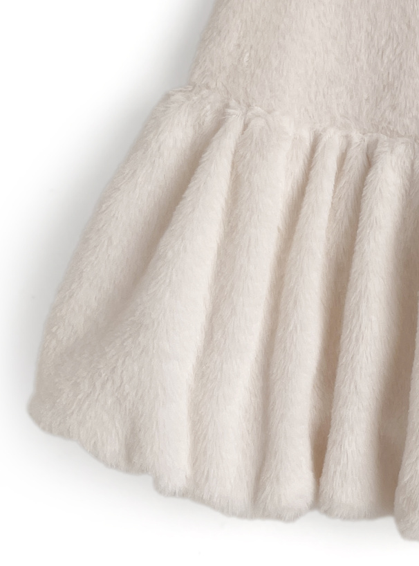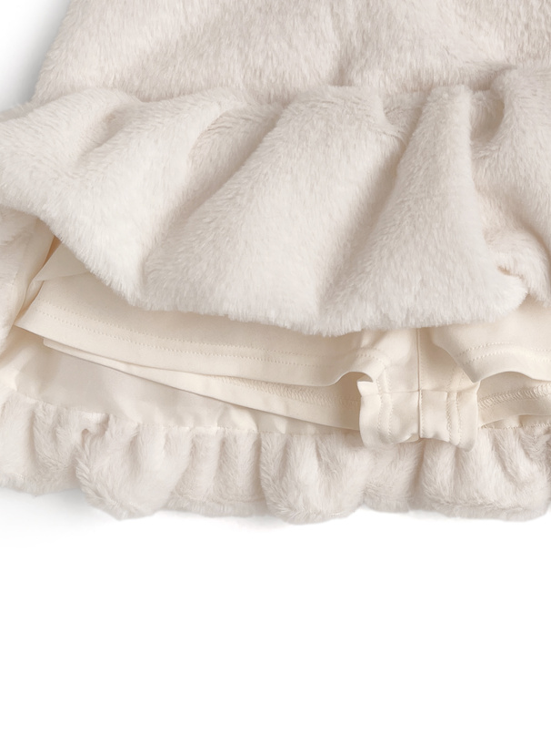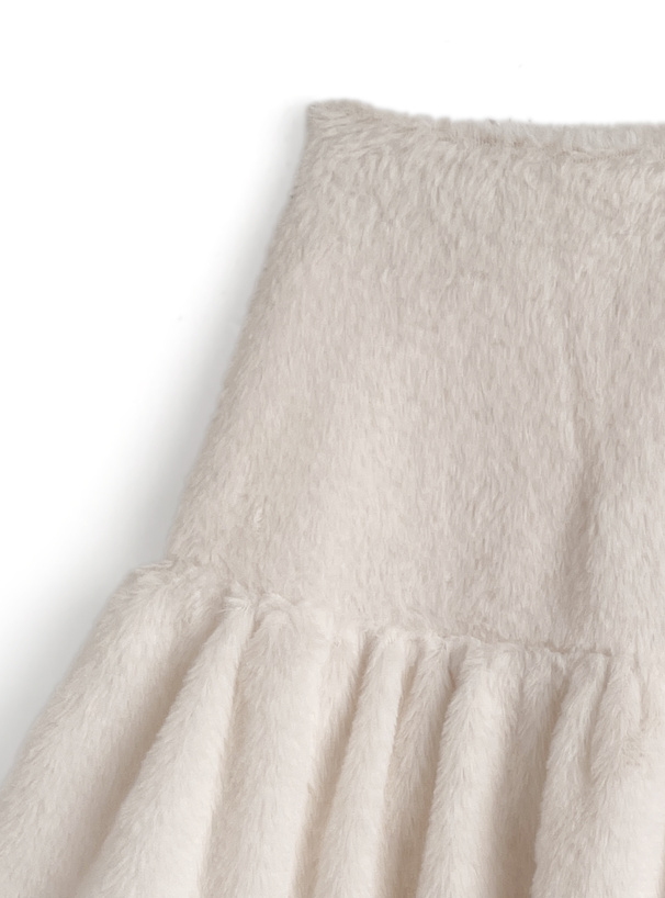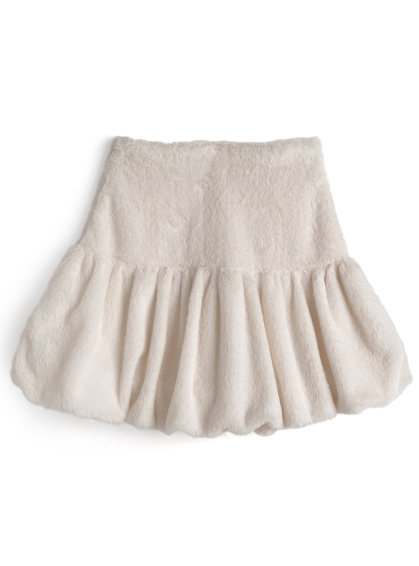ふわふわの手触りで心ときめくエコファー素材のミニスカート。