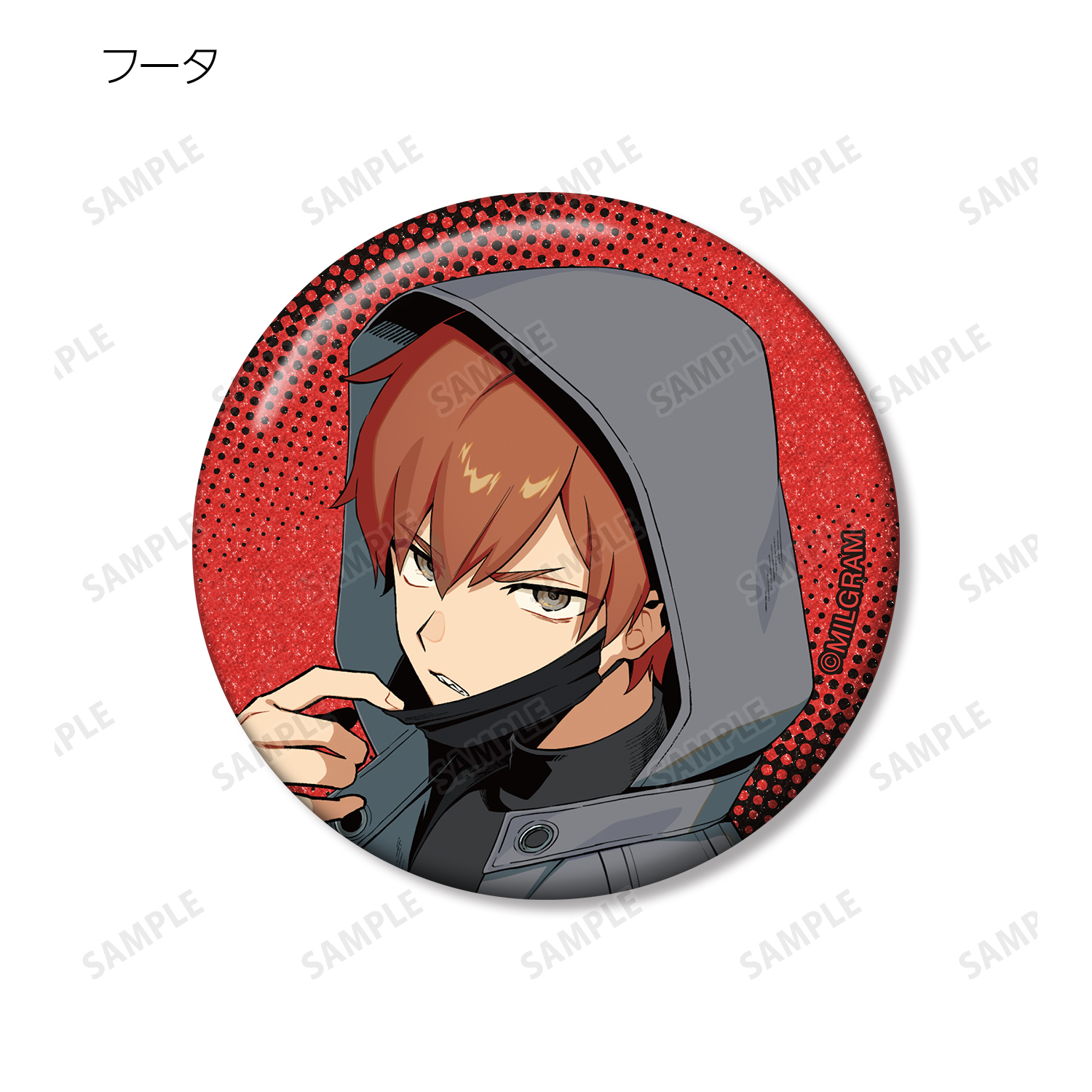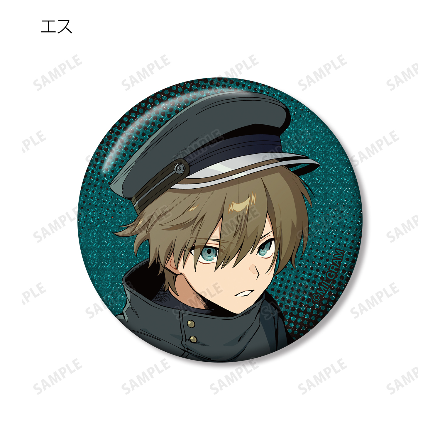エス、ジャッカロープ、ハルカ、ユノ、フータ、ムウ、シドウ、マヒル、カズイ、アマネ、ミコト、コトコの描き下ろしイラストをグリッター加工を施した缶バッジに仕上げました。