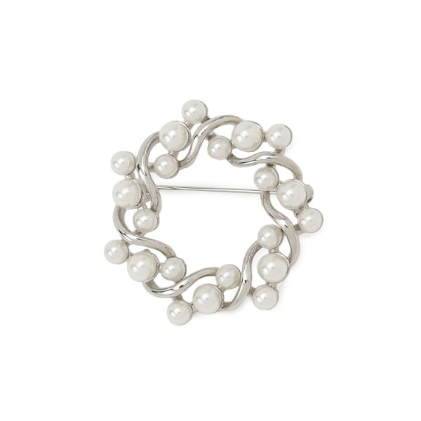 そのような幸福を願うリース型(サークル型)にパール調のパーツをあしらい立体感のある、ジャケットやワンピース、ストールとも相性の良いセレモニー・卒入学シーズンにも最適なデザインでおつくりしました。