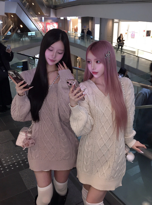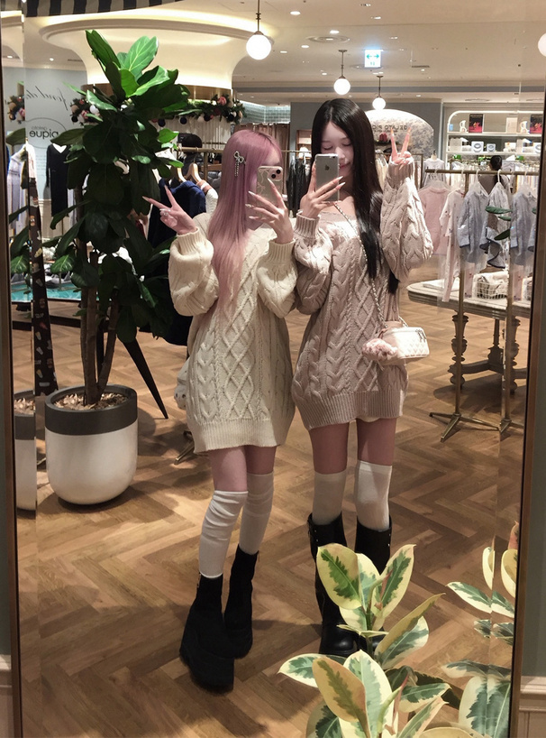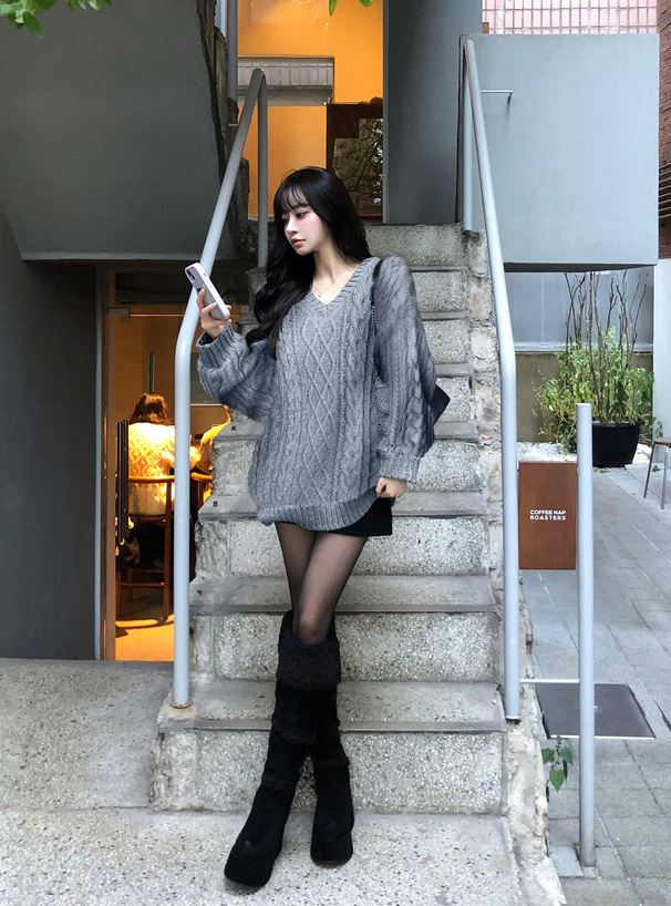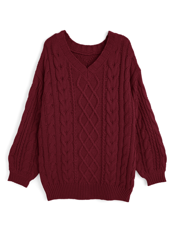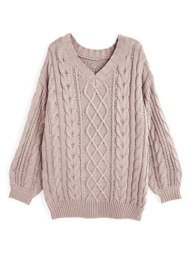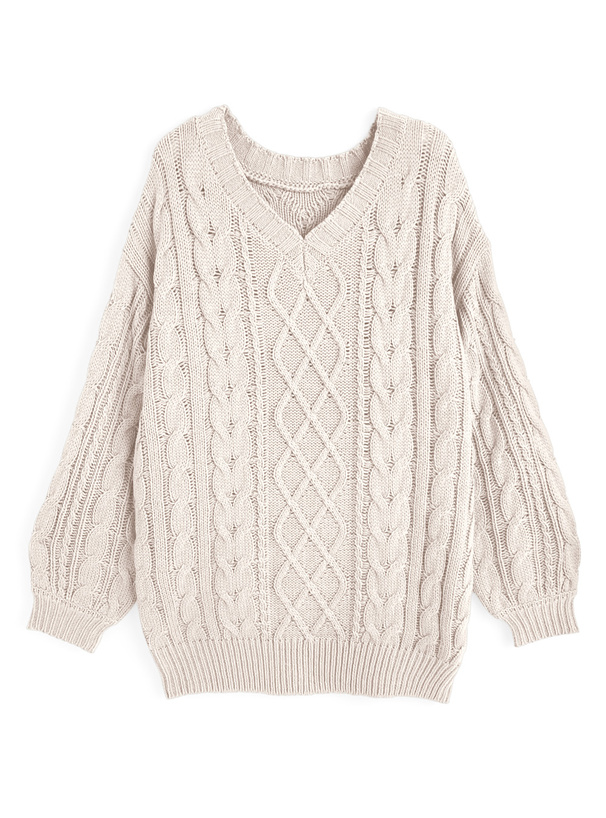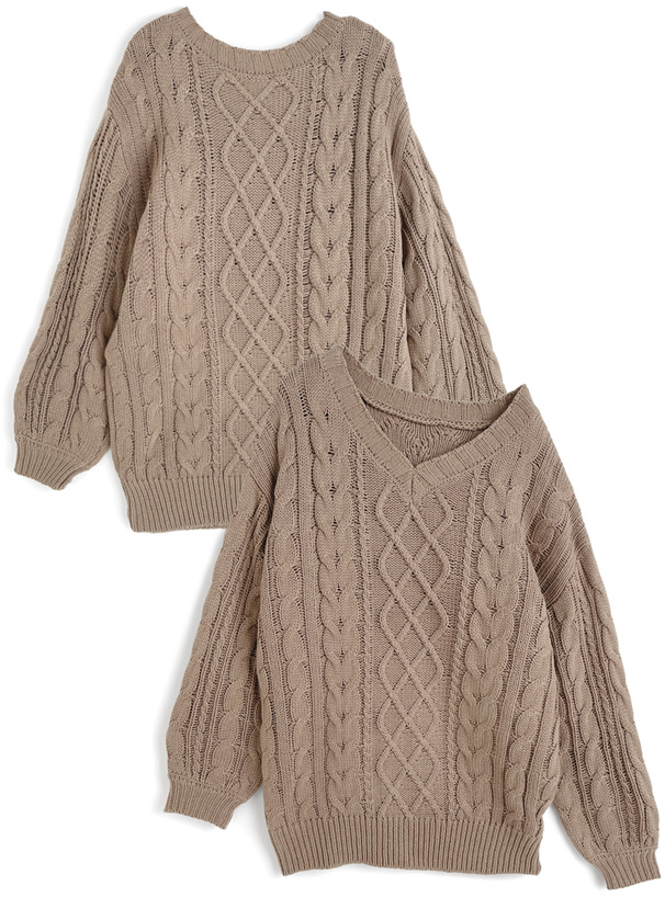ゆるっと編まれたケーブル柄の編地が特徴のニットトップス。