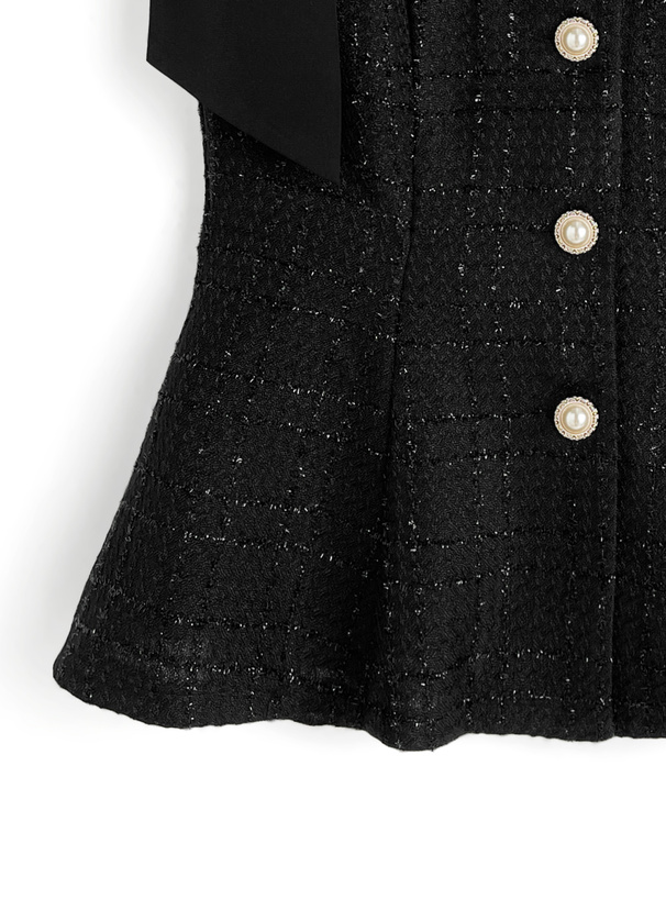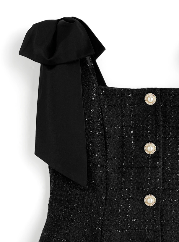 フィルム糸をミックスさせたツイード調生地が華やかな印象を与えるキャミソール。