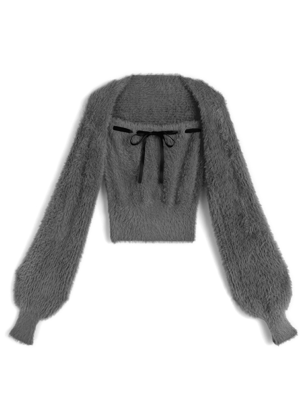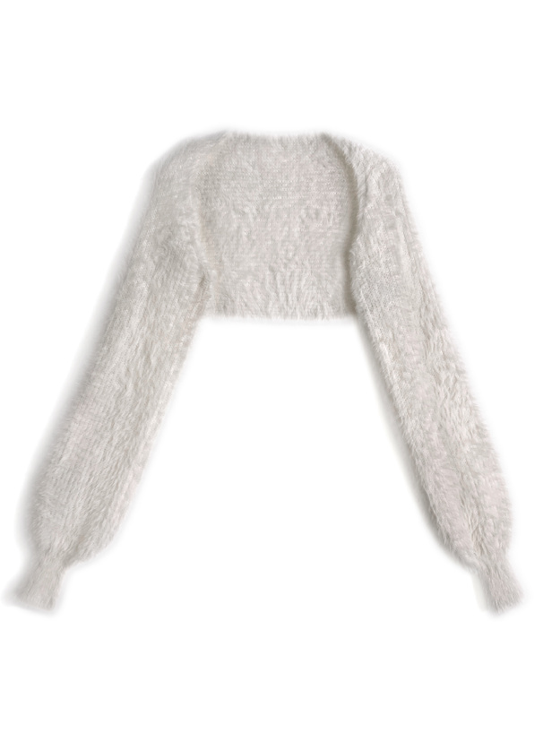ふんわりとした柔らかいシャギーニット素材で優しい着心地のアンサンブル。