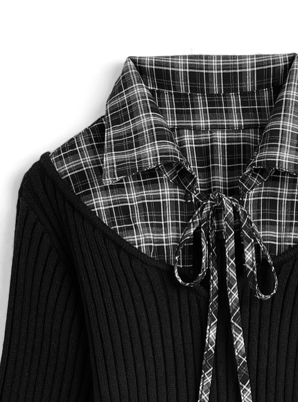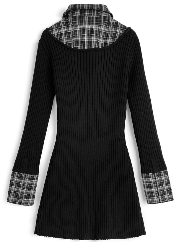 異素材のチェック柄シャツをドッキングしたミニワンピースの登場。