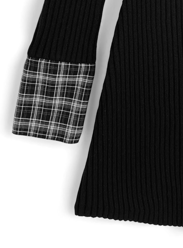 縦ラインを強調するリブ編みが、すっきりとしたシルエットを演出。
