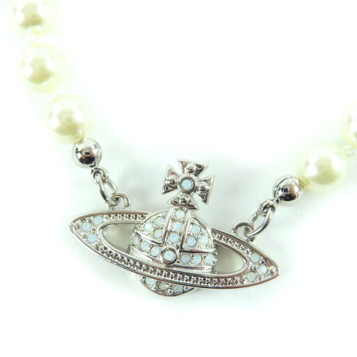 極美品△Vivienne Westwood ヴィヴィアンウエストウッド スモールオーブ ペンダント ラインストーン装飾 ネックレス アクセサリー シルバー レディース【中古】