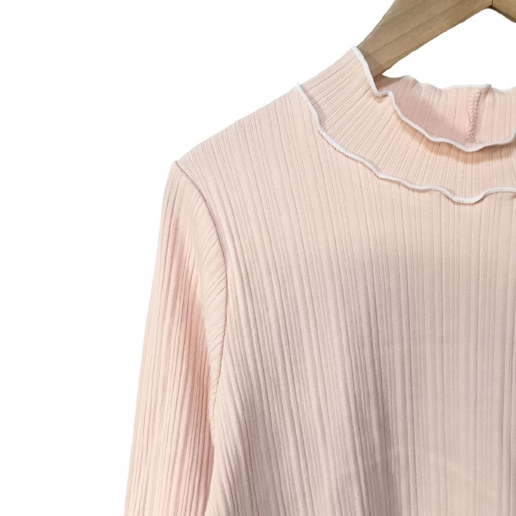 axes femme ビジューボトルネックリブプルオーバー