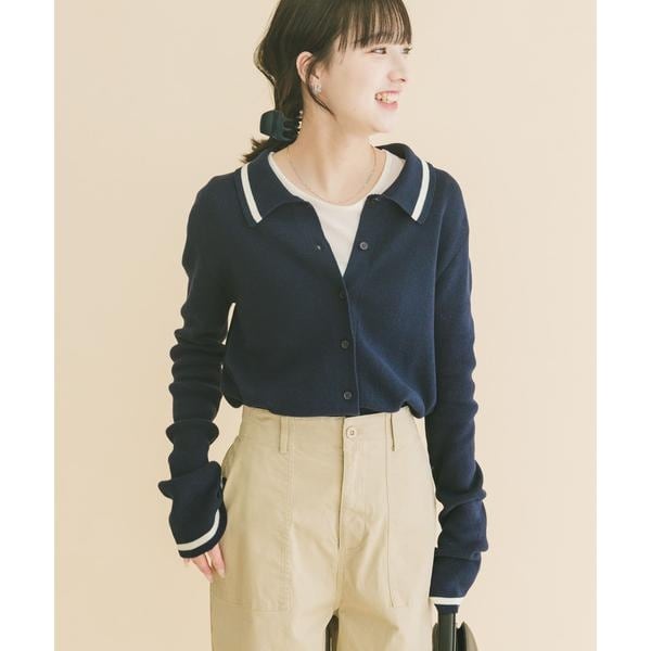 クラシカルを今っぽく。配色ラインが映える、大人のポロニット