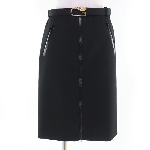 極美品☆GUCCI グッチ 747361 GG ヴィスコースクレープ スカート ブラック XS ハンガー付き イタリア製 正規品 レディース【中古】