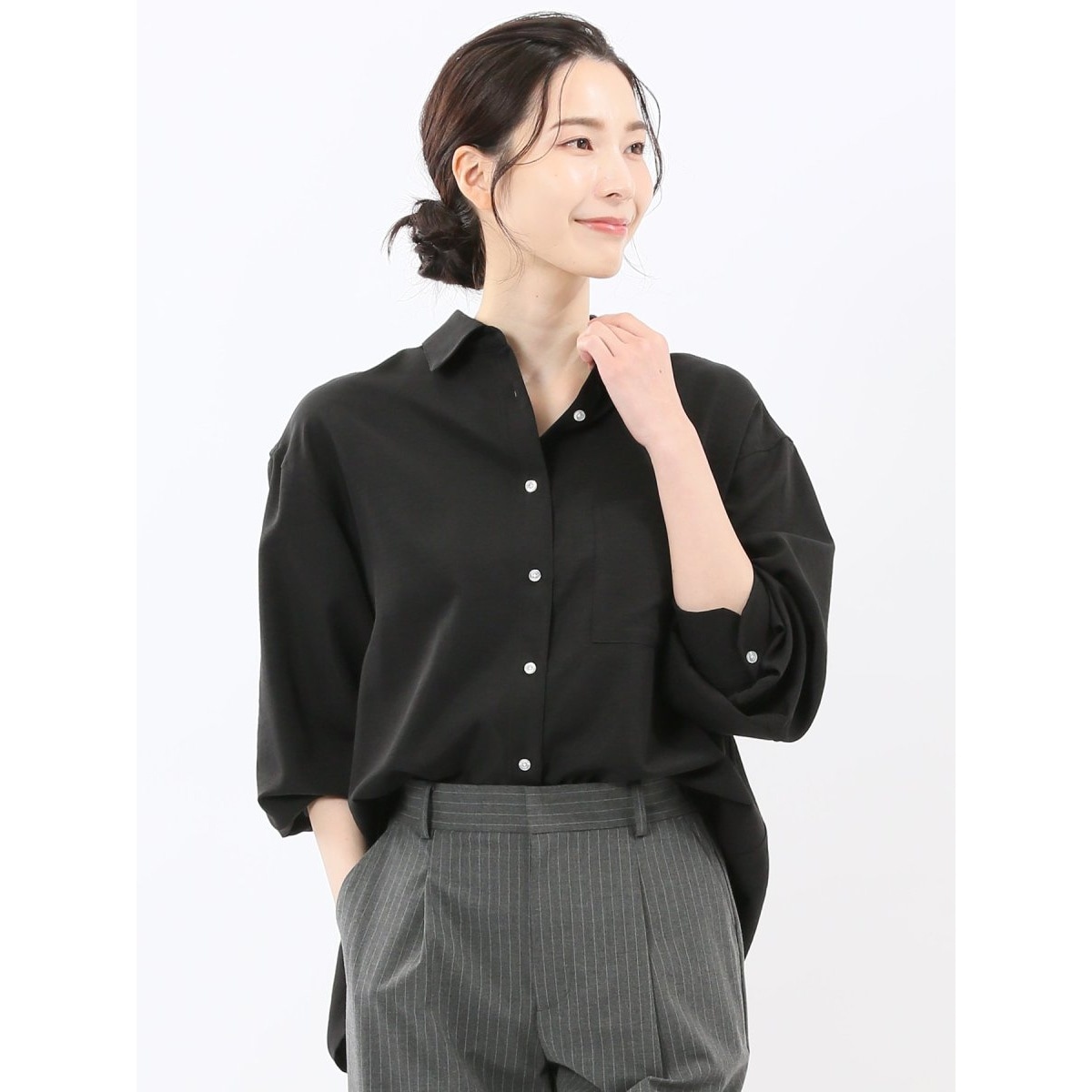 ストレッチ バックタック レギュラーカラー 長袖ブラウス