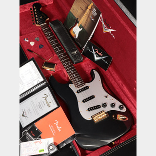 2024年製、イシバシ楽器がオーダーした1本。レアカラー『ブラックパール』フィニッシュにシルバーアノダイズドピックガード、ブラックパーツ、ゴールドハードウェアでまとめられた高級感溢れるストラトキャスター。2Pアルダーボディにローズウッド指板のメイプルネック、ネックシェイプは『1969"U"』で指板は12"ラディアスと高いプレイアビリティを実現。ピックアップは『69 Strat』を搭載、『Strat Blender w/Tone Saver Bleedワイヤリング』により幅広いサウンドメイクが可能です。