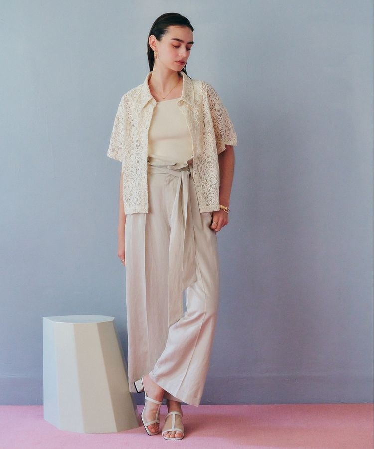 リネン混生地の上品な微光沢が高級感のあるひと品。爽やかなナチュラル素材で暑いシーズンにも涼しくご着用いただけるおすすめの一枚です。
