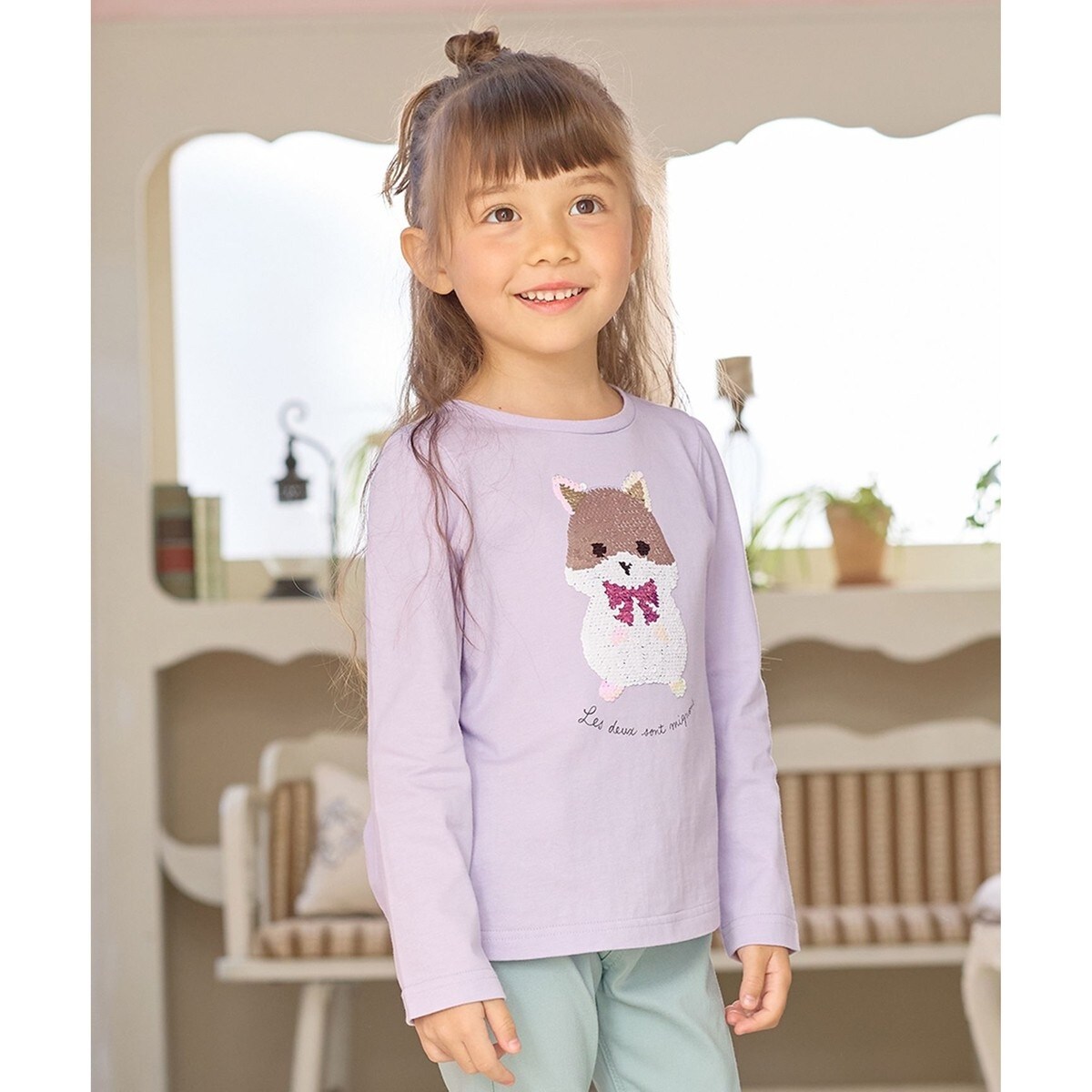 キッズ/長袖/Tシャツ/ミラクルスパンコール/アニマル/リボン/ハート/風船/通園/通学/人気/デイリー/女の子/ガール/サスティナブル