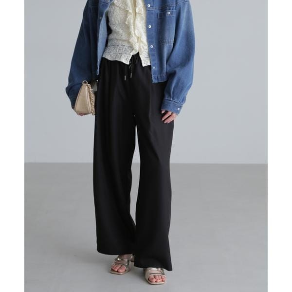 清涼感のある麻調合繊のイージーパンツ。柔らかく落ち感のある素材なので体に馴染みやすくラフな穿き心地です。ワイドストレートシルエットながら、前身にタックを入れることですっきとした印象に。Tシャツと合わせてカジュアルにも、シャツやブラウスと合わせれば綺麗めにも着ていただけます。※モデルの着用画像の場合、光の当たり具合により、実際の色味と異なって見えることがございます。色味は、商品単体の画像をご参照ください。
