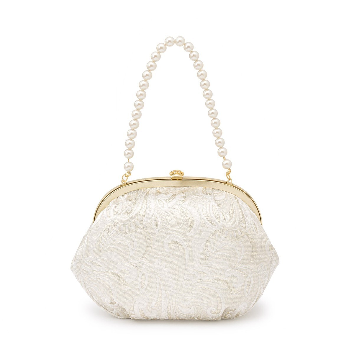 ハンドル(持ち手)はフェイクパールが連なる上品な印象です。こちらは丁寧に作られた日本製です。