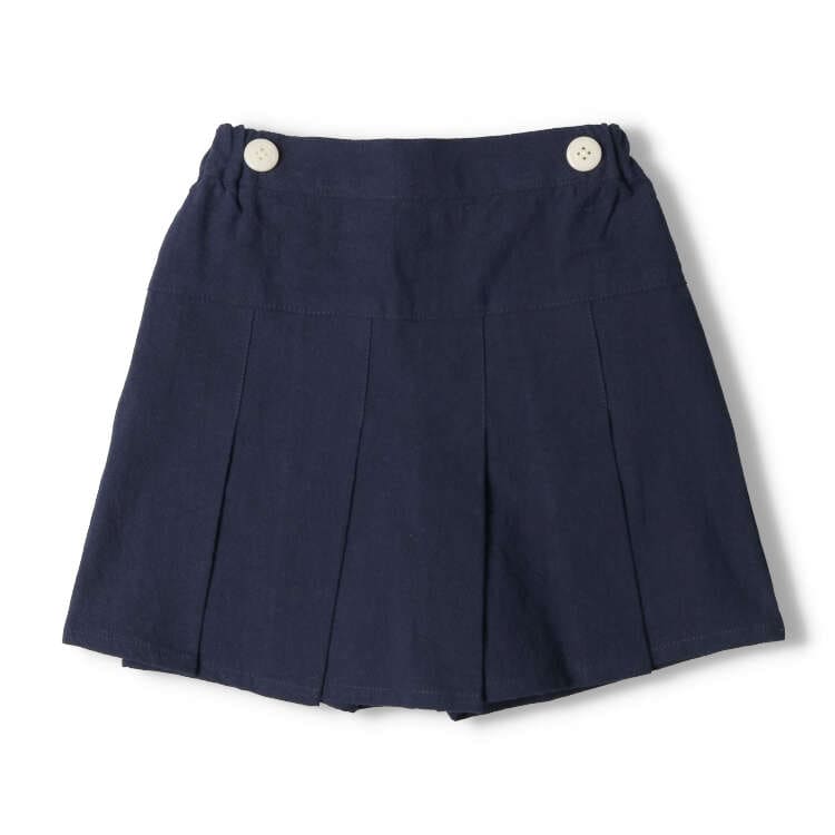 夏でもさらっと着られるワッシャークロス素材のショートパンツ。3分丈です。前はプリーツスカート風デザインですが、後ろはショートパンツになっているのがポイント!どんなアイテムとも合わせやすい無地デザイン。【アイテム】ナチュラル シンプル ベーシック フェミニン ガーリー 無地 カジュアル お洒落 オシャレ かわいい 大人可愛い 普段着 デイリーウェア お出かけ着 お外着 外遊び着 ショート丈 短パン ショーパン ボトムス 子ども こども 女児 女の子 ガールズ キッズ ベビーサイズ トドラーサイズ 幼稚園 保育園 小学校 通園 通学 小学生 2024年春物新作 丸高衣料 オフホワイト 白色 コン ネイビー 紺色 ムージョンジョン コットン100% 綿100%