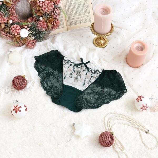 キラキラと揺れるオーナメントをモチーフにした、リサマリのクリスマスコレクションです。レースには窓辺に飾られているリボンやモミの木、ベルや鈴をふんだんに刺繍して、オーナメントがゆらゆらと揺れている様子を可愛らしく表現。窓の外に降り積もる雪の結晶を、たっぷりのラメ糸で豪華にあしらいました。フロント上辺はシンプルなレースで2段になるよう切り替えて、刺繍1つ1つを引き立たせるナチュラルな上品さを演出しています。年に1度のクリスマスシーズンは、Risa Magliのランジェリーでヒロインに。心ときめく素敵なひと時をお過ごしください。
