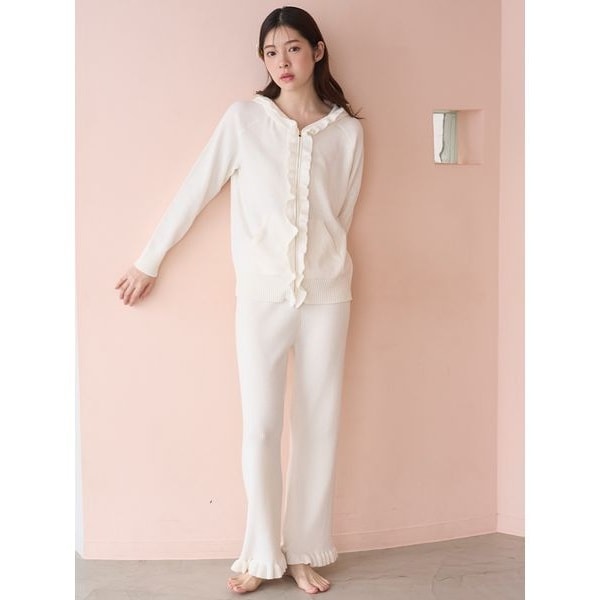 <b>裾フリルが踊るリブニットのロングパンツ</b>