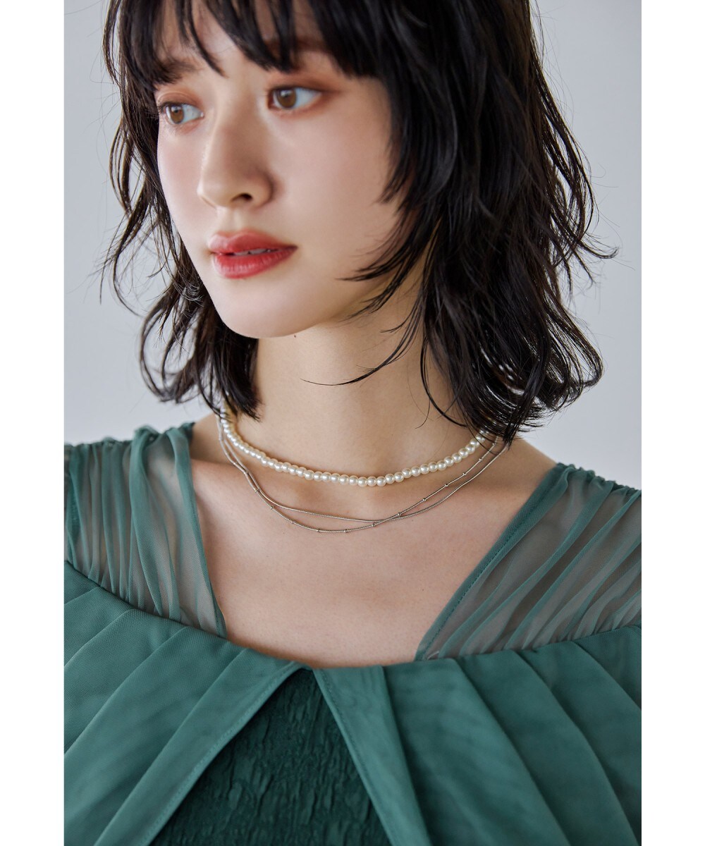 niana ニアナ 小粒パールとスネークチェーンをレイヤードした三連ショートネックレス。