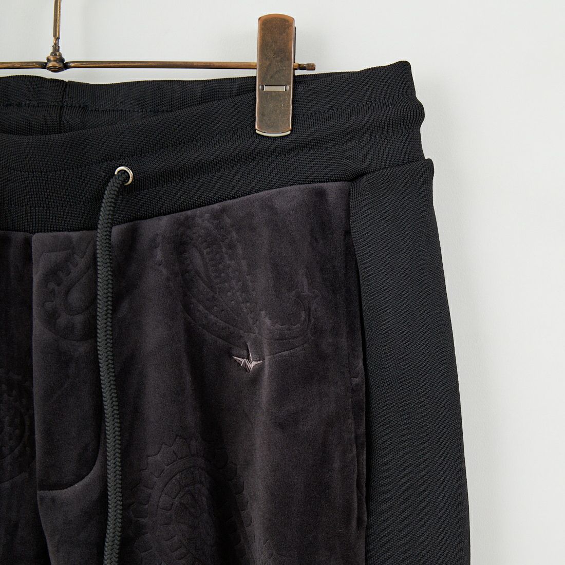 深みのある光沢と重厚感を備えたベロア素材を使用したジョガーパンツ。オリジナルのペイズリー柄をエンボス加工で立体的に表現し、陰影のある上品な表情を演出しています。しなやかなストレッチ性により、体の動きに自然にフィットして快適な穿き心地を実現。カジュアルなジョガーシルエットにラグジュアリーな素材感を融合させ、リラックスしながらも洗練された印象を与えます。同素材のパーカーと合わせれば、艶やかで統一感のあるセットアップスタイルに。タウンユースからラウンジウェアまで幅広く活躍し、大人のスタイルに上質な存在感をプラスする一本です。