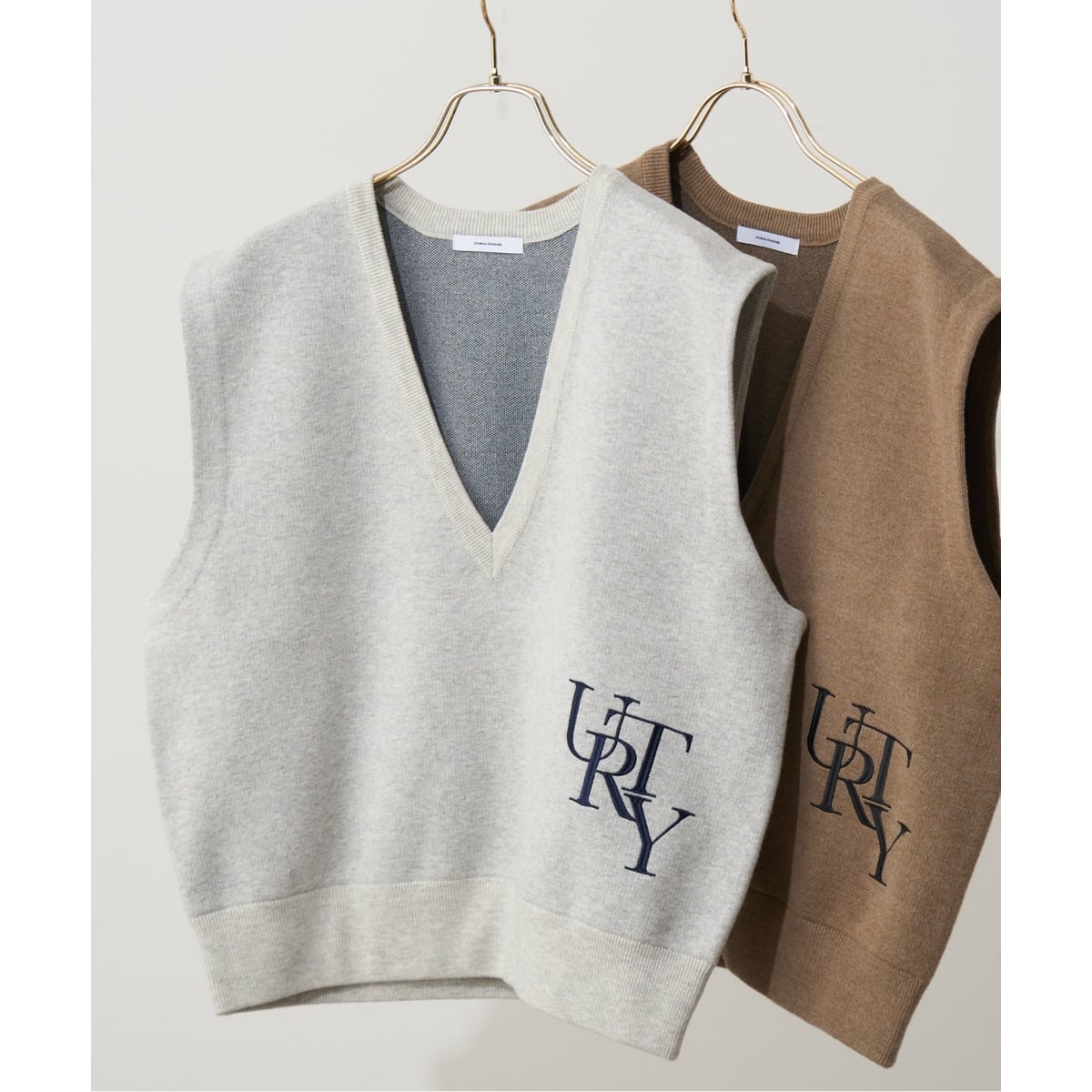 刺繍ロゴが目を惹くニットベスト。