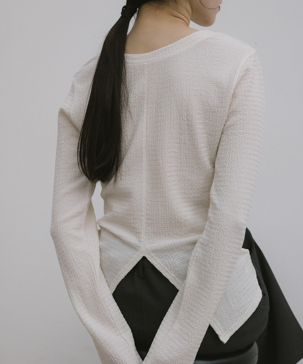 ◇ GeeRA ジーラ 2WAY シアー素材 ジャガード パールボタン ガーリー 長袖 ブラウス サイズL アイボリー レディース E 【1310050029425】