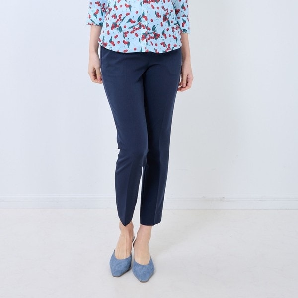 定番のベーシックシリーズから、脚のラインをすっきりと見せるテーパードシルエットが特徴的なパンツが登場。生地には伸縮性があるため動きやすく、締め付け感の少ない穿き心地を実現します。センタープレス入りのシンプルなデザインが魅力。ブラウスやシャツと合わせてオフィスシーンで着用したり、薄手のニットやジャケットと合わせたコーディネートもおすすめです。