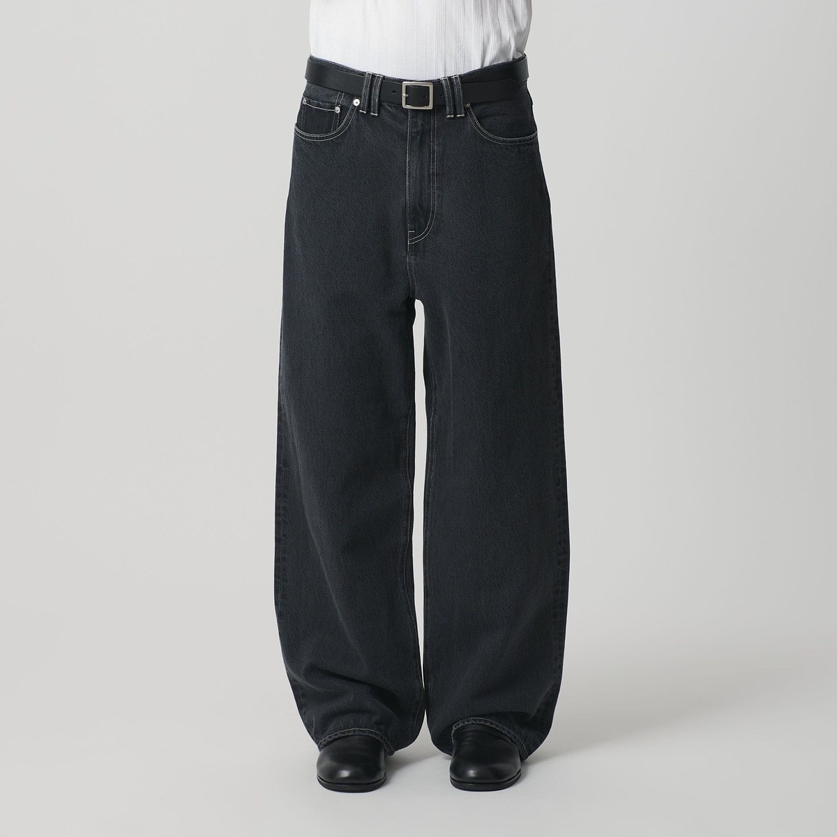 しっかりとした肉感のデニム素材を使用した、存在感のあるバギーパンツ。