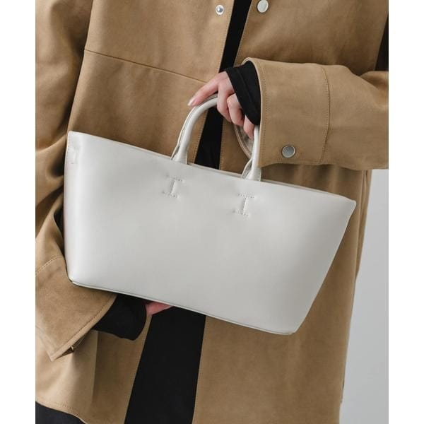 素材の持つ魅力を最大限に活かした、ミニマルなデザインのトートバッグ。滑らかでハリのあるフェイクレザーと、柔らかな表情のフェイクスウェードという、異なる質感を揃えたアソート展開でご用意しました。しっかりとした自立感がありながら、長時間持ち歩いても疲れにくい軽やかな仕上がりが魅力です。広めのマチを確保しているため、見た目以上の収納力を発揮。どんな装いにも品よく馴染み、コーディネートを都会的で落ち着いた印象にまとめてくれる一品です。