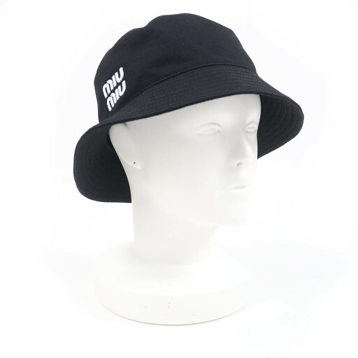 極美品◎MIUMIU ミュウミュウ 5HC196 ロゴ刺繍入り キルティング ハット/バケットハット/帽子 ブラック S イタリア製 正規品 レディース【中古】