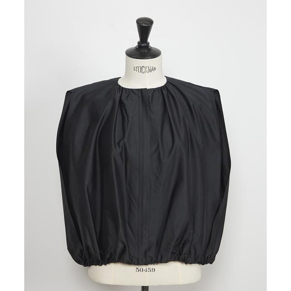 ■デザイン衿元から裾に向かうコクーンシルエットは、着心地も軽い仕上がりのブルゾンジレ。肩のスラッシュ開きから袖を出すケープ風のデザイン。凝ったデザインながら気になる肩や二の腕をさりげなくカバーしてくれるので、1枚で楽にスタイリングが決まります。■素材FABRICA社によるイタリア製高密度シルク・ポリエステルのタフタ素材。タテ糸のシルクによる風合いと光沢感、ヨコ糸のポリエステルによる適度なハリ感あります。■下げ札サイズ表記1=(S/7号)2=(M/9号)3=(L/11号)■サンプル撮影商品画像の商品はサンプルです。実際の商品とはサイズや色味、素材、デザイン等の仕様が若干変更になる場合がございます。