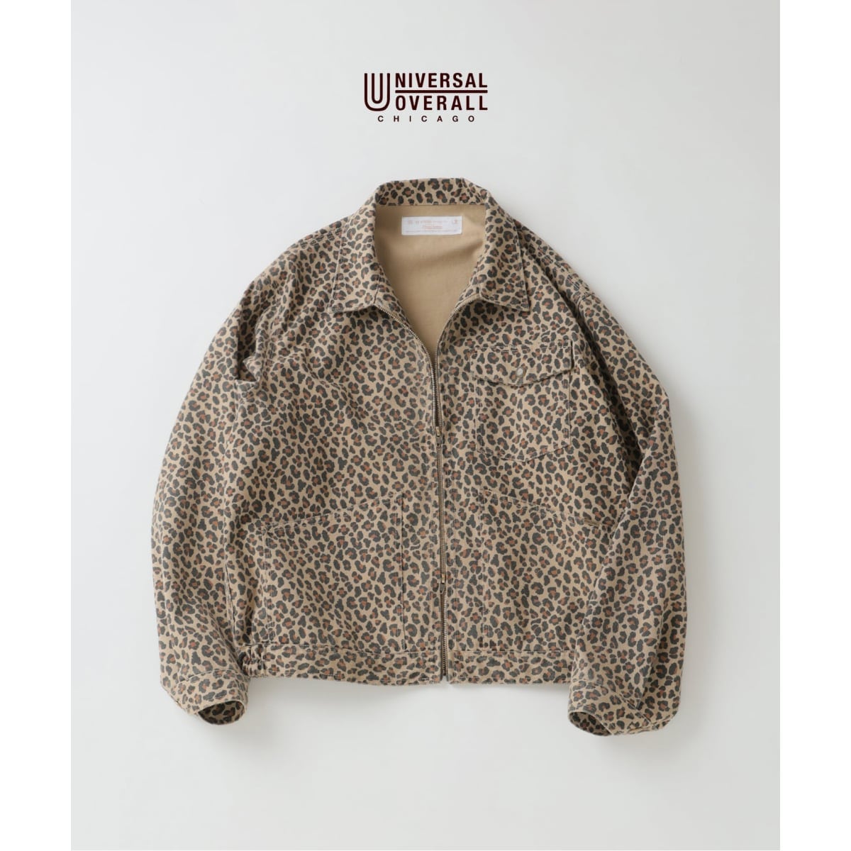 UNIVERSAL OVERALLのアーカイブにあった「トラックジャケット」をベースに、今回の別注のために特別に柄を起こした「カモフラージュ」と「レオパード」の2パターンを展開しました。