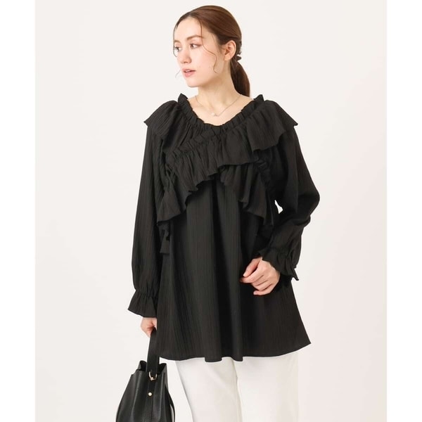 【ティアラ】2wayフリルネックギャザーブラウス シャツ ハイネック F
