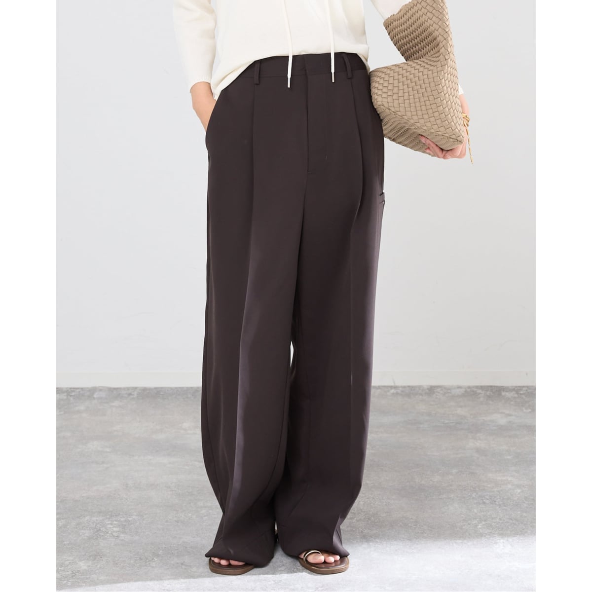 仕立て映えのする素材特性を活かし、シルエットが美しく際立つパンツに仕上げました。