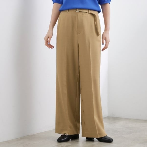 ウエストに切り替えを入れない、続き仕様のウエストデザインが特徴のワイドパンツです。