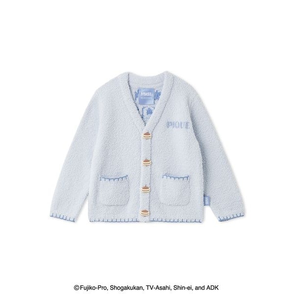 ハッピーなにこにこ顔やプンプン怒った顔、涙がこぼれそうなうるうる顔まで。ドラえもんとドラミの豊かな表情を描いたオリジナルアートが、喜怒哀楽いっぱいの毎日に寄り添う『ドラえもん』シリーズ第2弾。’喜’の表情のドラえもんと、’楽’の表情のドラミを背中に大きくあしらったキッズサイズのカーディガンです。ふんわりと柔らかな’ベビモコ’素材を使用。それぞれどら焼きモチーフとお花モチーフの立体的なボタンをポイントに、温もりを感じる裾や袖口のブランケットステッチやオリジナルのピスネーム、胸元のサガラ刺繍など、細部まで作り込んだスペシャルな1枚です。色はドラえもん柄のライトブルーと、ドラミ柄のピンクの全2色。同シリーズのカットソーに合わせたり、ベビーサイズとのお揃いコーディネート、レディース、メンズアイテムとのリンク・コーディネートもお楽しみいただけます。