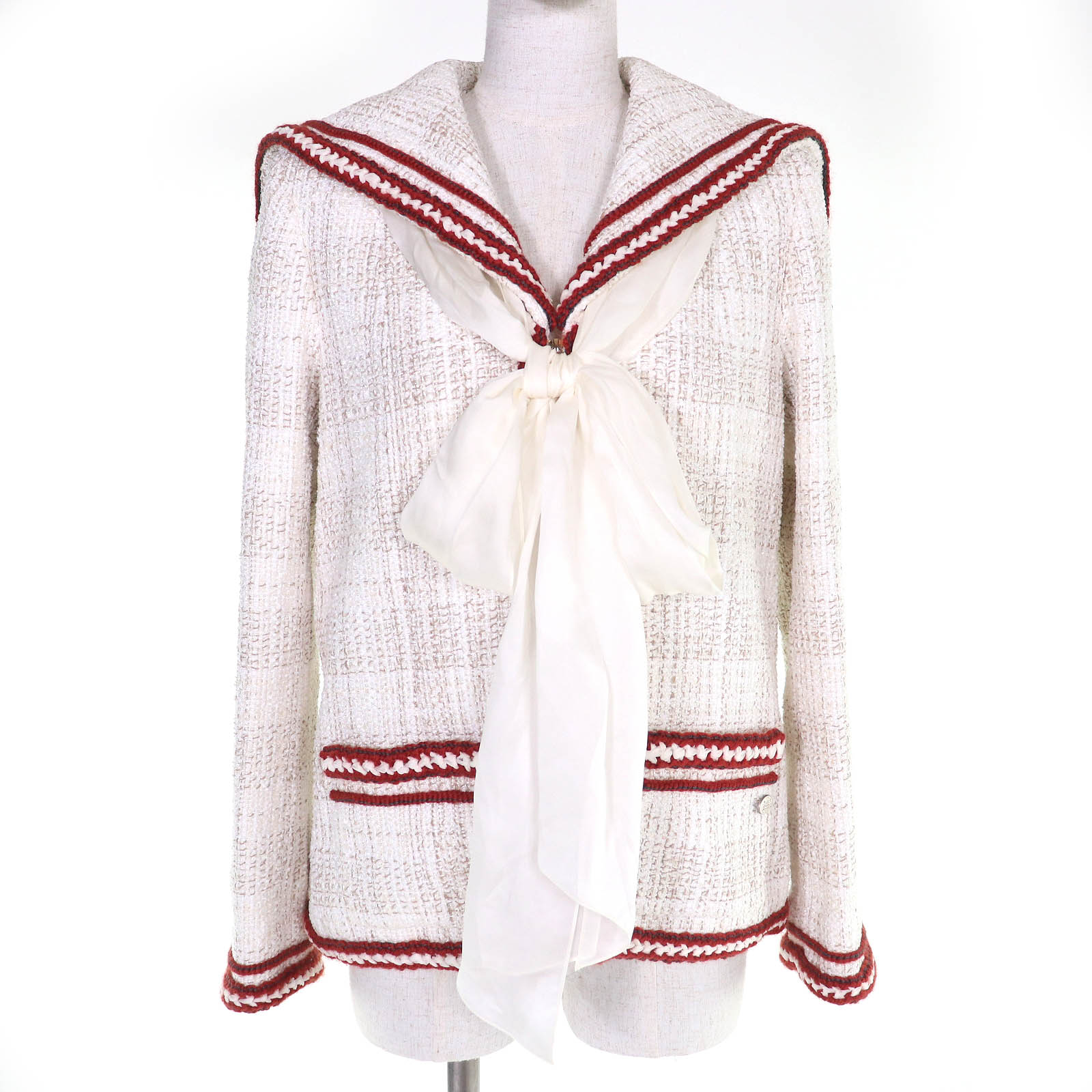 極美品☆CHANEL シャネル コットン100% ココビーチ セーラーカラー フレンチスリーブ トップス ホワイト 36 イタリア製 正規品 レディース【中古】