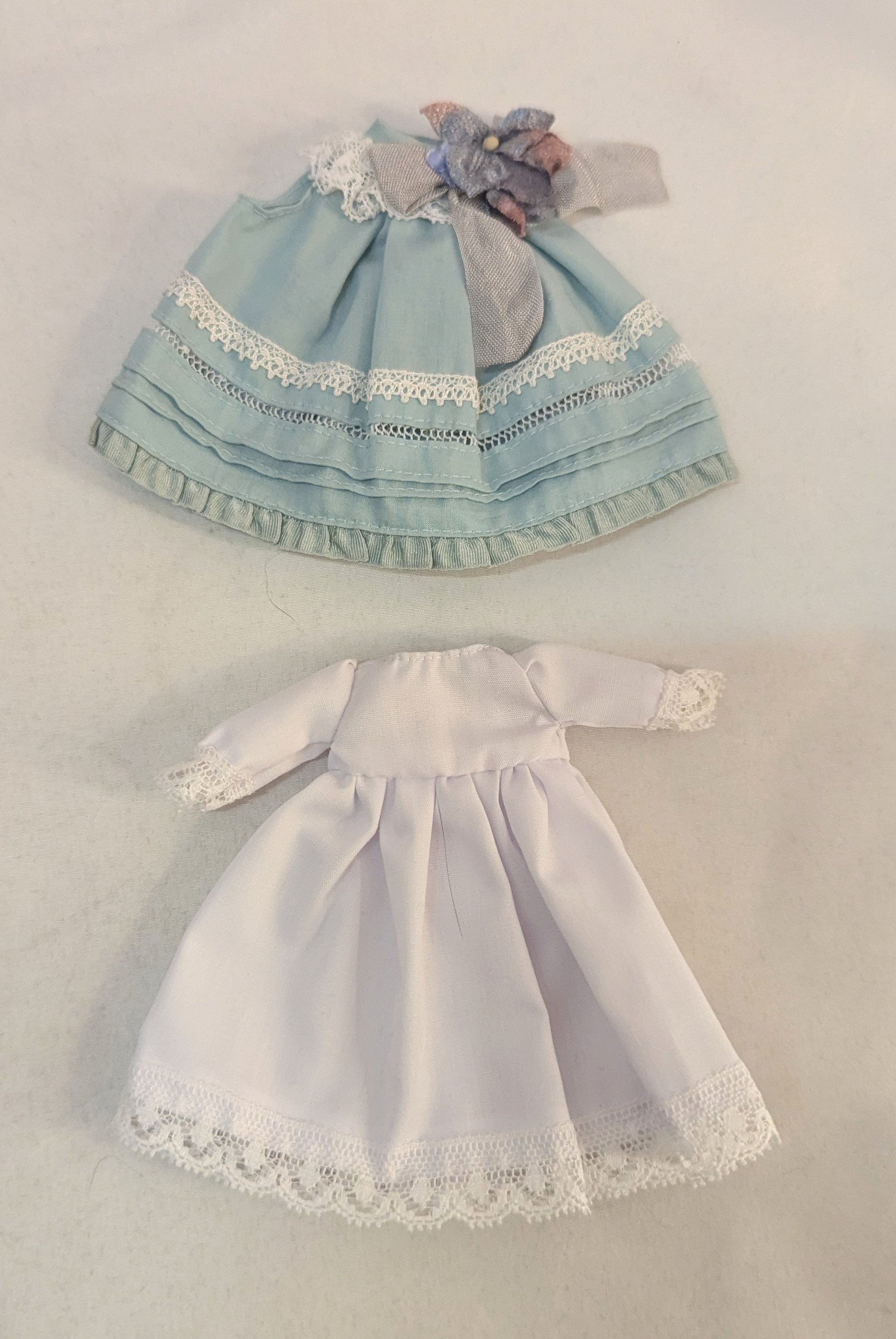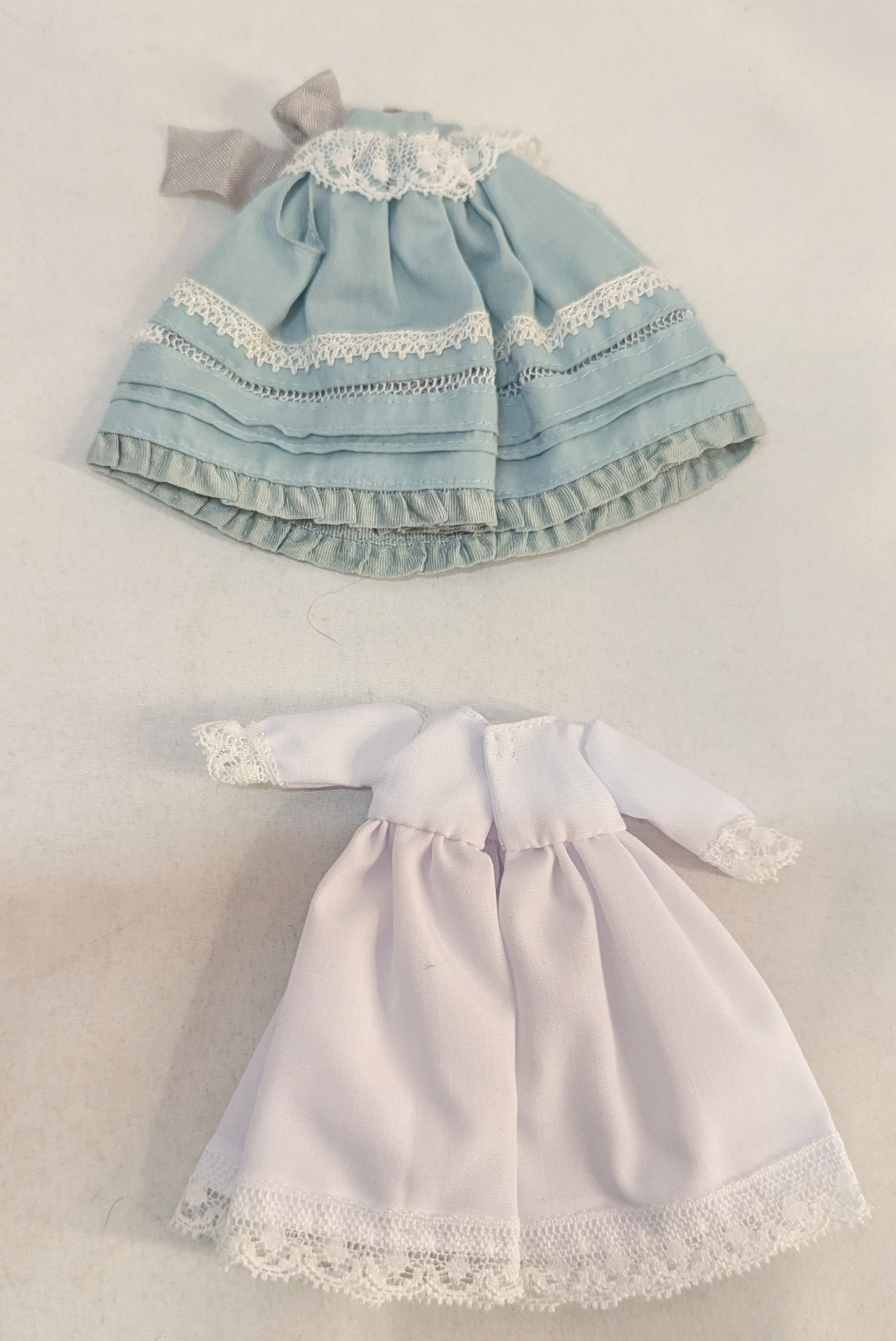 ドール衣装 22-27cmサイズ ホワイト×水色系 ノースリーブワンピース