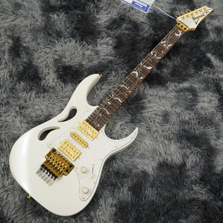 30年以上にわたりスティーヴが愛用し続けているIbanezのオリジナル・トレモロ、Edge。サドルの位置調整ボルトへのアプローチの良さに加えてデザイン的な特徴でもあるライオンズ・クロウ・キャビティ加工がJEM同様に採用されています。