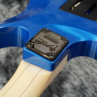 3ピースのメイプル材と2 ピースのウォルナット材をラミネートした5pcs 構造で剛性を高めています。極限まで軽い握り心地を好むプレイヤーに最適な、Ibanez= 薄ネックのパイオニアたる所以とも言うべきシェイプです。