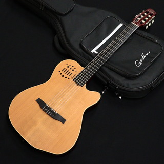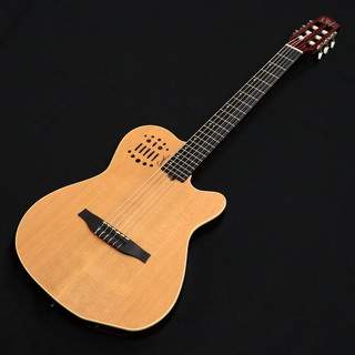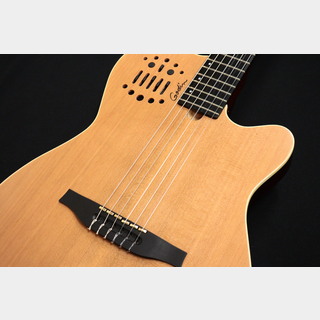 ACS Nylon Natural SGは、クラシックギターのサウンドとソリッドボディの長所を融合させギターシンセサイザーに直接アクセス可能な多彩なモデルです。シルバーリーフメイプルボディとバスウッドウイング、シダートップとの組み合わせは、ナイロンらしさのあるサウンドと響きをプラグドでも実現します。ナット幅1.9″ (48.26 mm)のマホガニーネックは、セミグロスフィニッシュによって高い演奏性を実現。ボディはチェンバーされていますが、レスポンスとサスィティンはトラディショナルなアコースティックギターよりもソリッドボディギターに近く、バンド内でのハウリングリスクも最小限に抑えています。各弦がそれぞれ完全独立したL.R.Baggs Custom Piezo P.U.を採用し、クリアで確実なプラグドサウンドだけでなく、13ピンコネクターでRolandTM GRシリーズのギターシンセサイザーに接続した際の弦同士の干渉を最小限に抑えています。