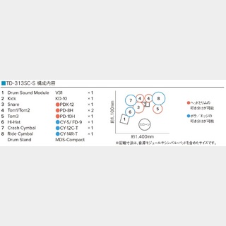 *フットペダル、ドラムマット、ドラムスローン、ヘッドホンは別売りです。